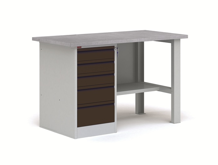 Металлические слесарный верстак ВП-3/1,4 черный представляет собой рабочий стол для ручной обработки металлических, деревянных изделий, а также предметов, выполненных из других материалов. Металлический верстак используется в мастерских, гаражах, автосервисах и в других рабочих зонах. Он являются основой, как небольшого промышленного производства, так и крупного предприятия. Допустимая равномерно распределенная нагрузка на верстак - 1000 кг, на полку верстачную - 40 кг, на выдвижной ящик - 30 кг. В комплект верстака ВП-3/1,4 входит: столешница СТ-1,4 из МДФ, покрытая оцинкованным листовым металлом, комплект К-2/1,4 (стенка задняя металлическая, металлическая верстачная опора), тумба Т-2 с пятью выдвижными ящиками. Тумба закрывается центральным ключевым замком. Тумбу можно установить как с левой, так и правой стороны верстака. Дополнительно на верстак можно установить два перфорированных экрана соответствующего размера, аксессуары на экран. Цвет: верстак - серый Ral 7035, лицевая панель ящиков - черный муар Ral 7021. Гарантия 1 год. Срок службы 10 лет