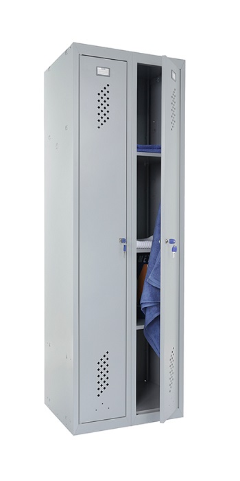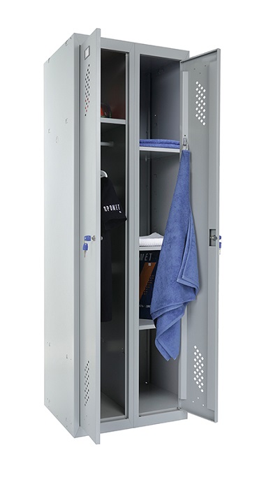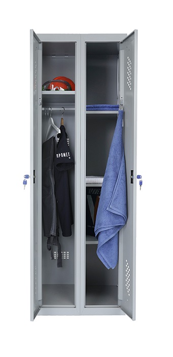 Шкаф для раздевалок усиленный Практик ML 21-80U предназначен для хранения сменной одежды в производственных, спортивных и других помещениях, а также для организации камер хранения. Представляет собой сборно-разборную жесткую конструкцию, усиленную сварной рамой. Собирается в вертикальном положении при помощи зацепов и саморезов. Специальные элементы боковых креплений на боковой стенке позволяет наращивать ряд модулей любой длины. Все модули серии ML совместимы между собой. Шкаф МL 21-80U оснащен улучшенной вентиляцией на дверях и задней стенке. Шкаф разделен на две секции. Одна секция комплектуется полкой для головного убора и перекладиной для вешалок и крючками. Вторая секция комплектуется 4 полками. Двери закрываются ключевым замком Практик (2000 комбинаций). Открывания дверей правостороннее или левостороннее. Цвет: серый-полуматовый (Ral 7038). Возможен окрас в другие цвета из палитры производителя. Дополнительная опция: замок PL (вместо ключевого замка устанавливается бесключевой замок Euro-locks A129 с устройством под навесной замок). Поставляется в разобранном виде.